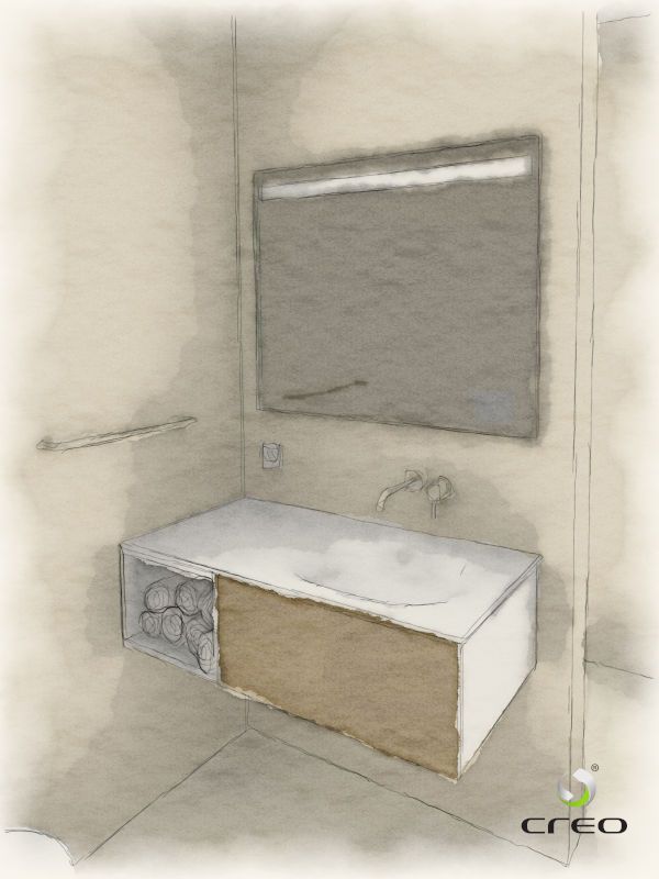 ButtonMit der 3D-Badplanung von CREO sieht der Kunde schon vor der Badsanierung, wie sein neues Badezimmer aussehen wird.